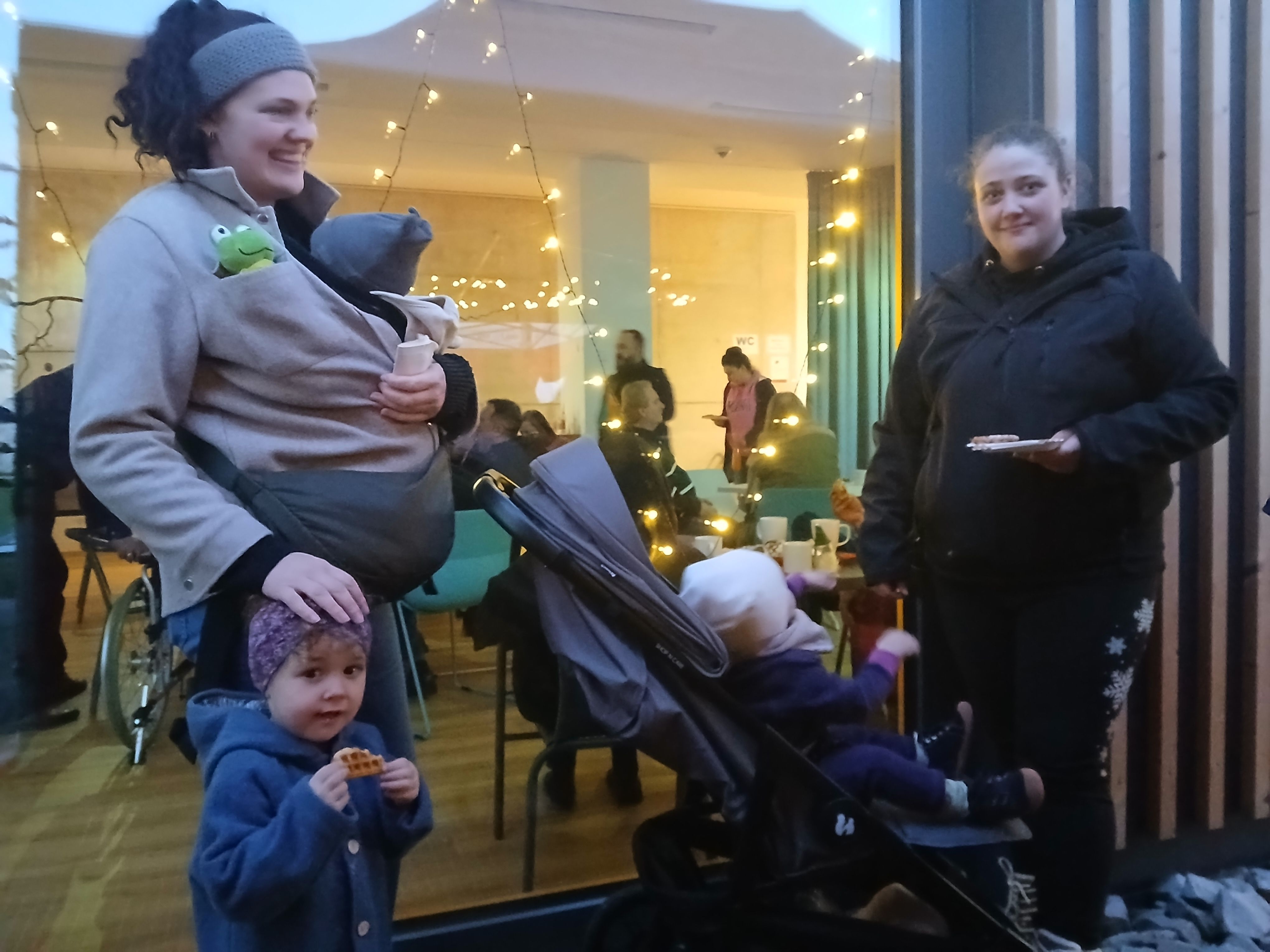 Eingeladen waren nicht nur unsere Bewohner*innen, sondern auch gesetzliche Betreuer*innen, Angehörige, Nachbar*innen und sogar die Familien unserer Mitarbeiter*innen – eine richtig schöne, bunte Runde. Für Leib & Seele gab’s gegrillte Würstchen 🌭, duftende Waffeln 🧇 und alkoholfreien Weihnachtspunsch 🍹.